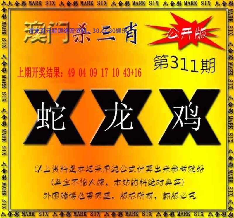 309期:绝杀三肖【狗鸡兔】开:鼠06准